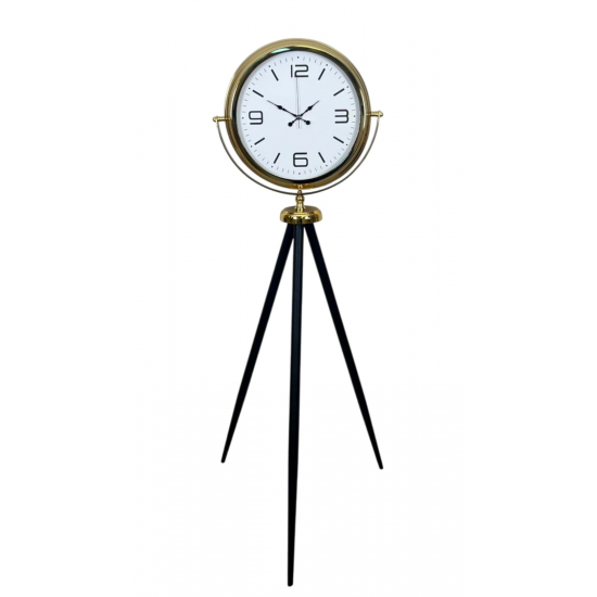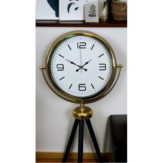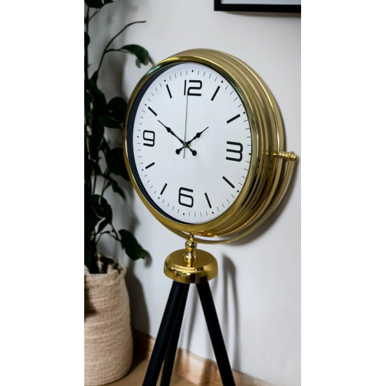 Modern tasarımı klasik detaylarla buluşturan Gold Tripod Ayaklı Dekoratif Saat, yaşam alanlarına güçlü bir karakter ve zamansız bir şıklık kazandırmak için tasarlandı. Geniş kadranı, zarif gold çerçevesi ve dengeli tripod ayak yapısıyla sadece zamanı gösteren bir obje değil, aynı zamanda bulunduğu mekânın odak noktası olan özel bir dekor parçasıdır.