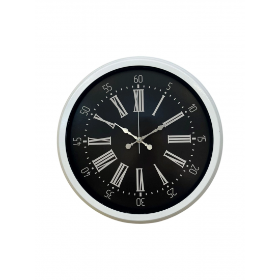 Klasik Roma rakamlarının asaleti ile modern siyah kadranın güçlü duruşunu bir araya getiren bu duvar saati, bulunduğu ortama hem şıklık hem de karakter kazandırır. Beyaz metal kasası sayesinde duvarda ferah bir görünüm sunarken, siyah zemin üzerindeki Roma rakamları ile dikkat çekici ve prestijli bir tasarım oluşturur.