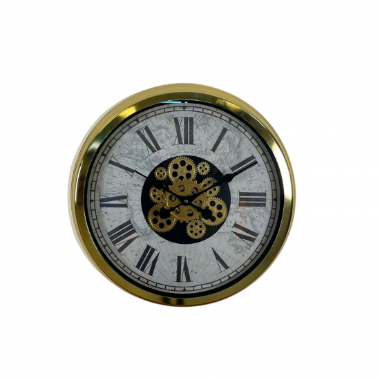 Vintage harita detaylı kadranı, mekâna sofistike ve karakterli bir hava katarken; merkezde yer alan hareketli gold çark sistemi ürüne dinamik ve dikkat çekici bir görünüm kazandırır. Salon, ofis, makam odası, kütüphane, otel lobisi ve prestijli yaşam alanları için ideal bir dekoratif tamamlayıcıdır.