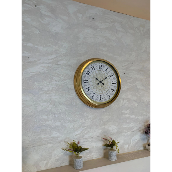 Evinizin, ofisinizin ya da iş yerinizin duvarına zarafet katacak bu 40 cm Gold duvar saati, şık tasarımı ve göz alıcı detaylarıyla bulunduğu ortama anında değer katar. Gold çerçevesi, dekoratif desenli kadranı ve net rakamları ile klasik ve modern çizgiyi bir arada sunar.