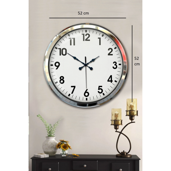 Mey İthalat® Krom Şıklık 52 Cm Metal Modern Duvar Saat