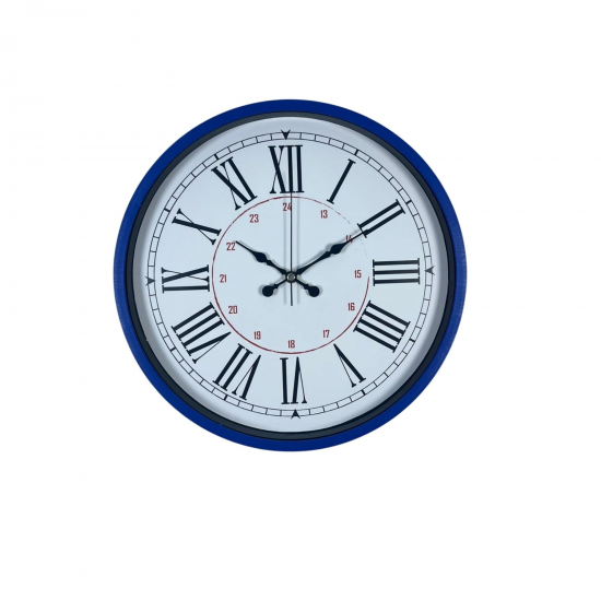 Şık lacivert kasası ve beyaz kadranı ile tasarlanan bu 36 cm duvar saati, klasik Romen rakam detaylarını modern bir renk dokunuşuyla buluşturur. İç bölümde yer alan kırmızı 24 saat göstergesi sayesinde standart saatlerden ayrılır ve daha fonksiyonel bir kullanım sunar.