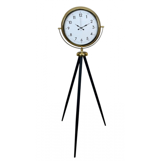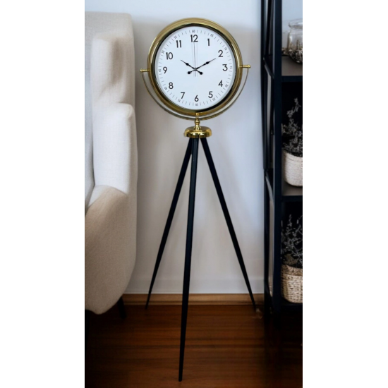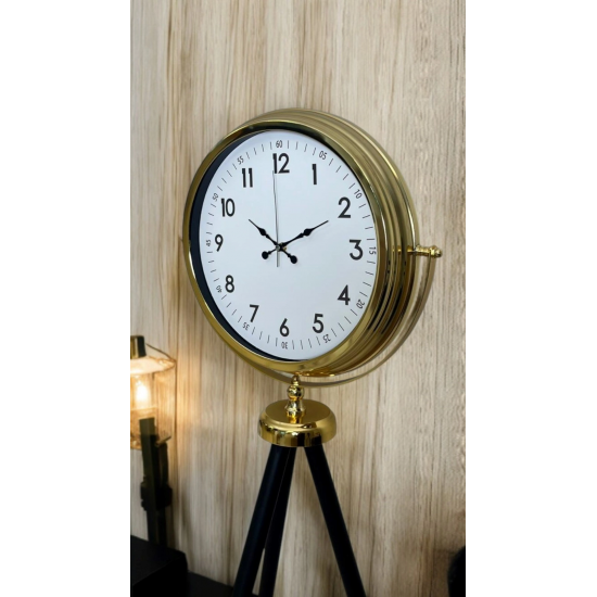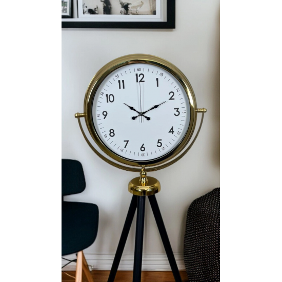 Net okunabilir rakamlı kadranı, zamansız bir tasarım anlayışı sunarken; tripod ayak formu ürüne modern ve özgün bir karakter kazandırır. Salon, ofis, otel lobisi, showroom ve prestijli yaşam alanları için ideal bir dekoratif saattir.