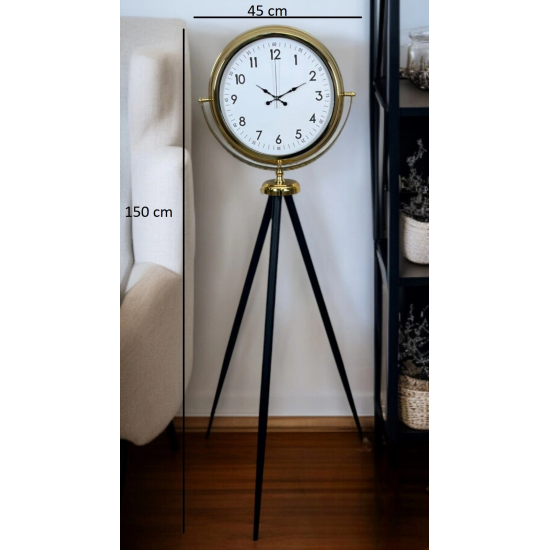 ?️ Gold Tripod Ayaklı Dekoratif Saat – 150 × 45 cm