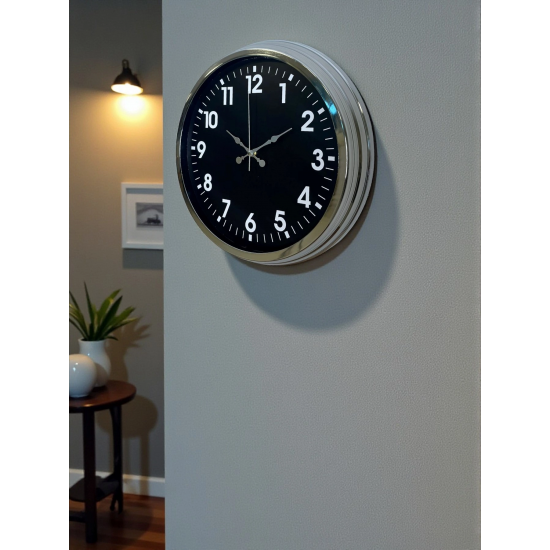 Şık ve güçlü tasarımıyla öne çıkan bu 40 cm krom metal duvar saati, yaşam alanlarınıza hem estetik hem de işlevsellik kazandırır. Parlak krom metal kasası, siyah kadran ile mükemmel bir kontrast oluşturur ve modern dekorasyonlara kolayca uyum sağlar.