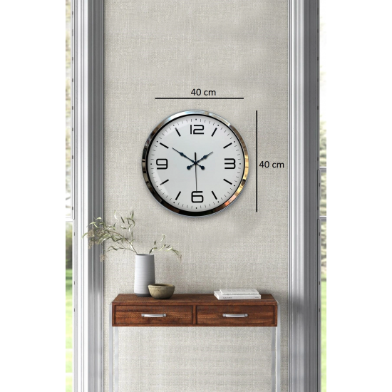 40 cm Metal Krom Modern Duvar Saati