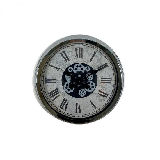 Zarif krom çerçevesi, dünya haritası desenli özel tasarım kadranı ve Roma rakamlı klasik görünümüyle bu 60 cm çarklı duvar saati; yaşam alanlarınıza hem karakter hem de prestij kazandırır.