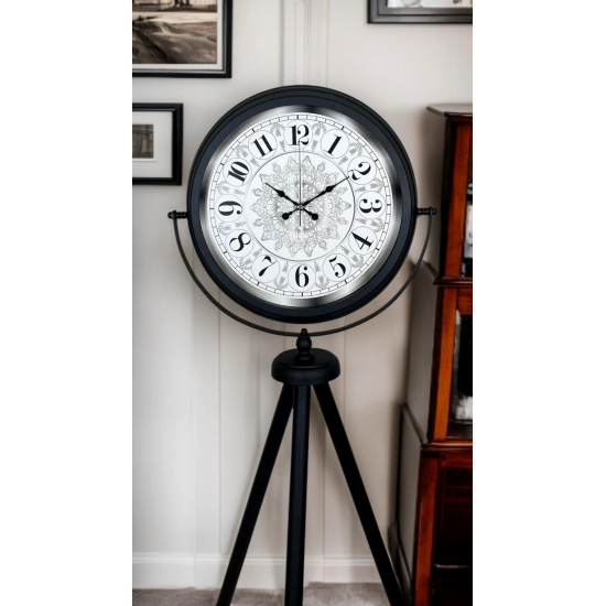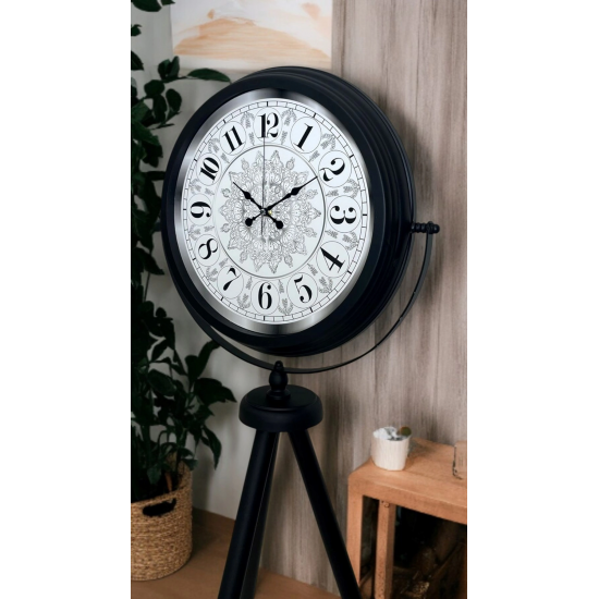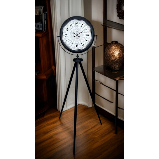 Zamansız tasarımı, güçlü duruşu ve dikkat çekici formu ile siyah tripod ayaklı dekoratif saat, klasik ve modern dekorasyonu bir araya getiren özel bir tasarım ürünüdür. Sıradan duvar veya masa saatlerinden farklı olarak ayaklı formu sayesinde bulunduğu ortamda dekoratif bir odak noktası oluşturur.