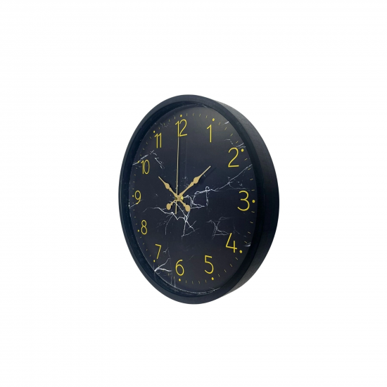 Mey İthalat® Siyah Mermer Desenli Görünümlü 36 Cm Duvar Saati