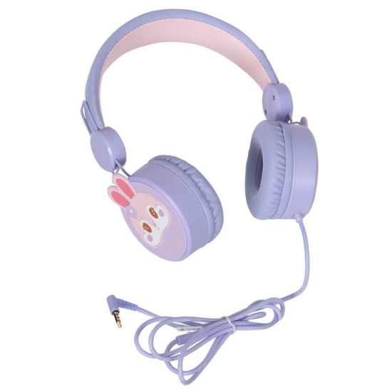 Mey İthalat® KULAKLIK MİKROFONLU KABLOLU TAVŞAN RESİMLİ LİLA