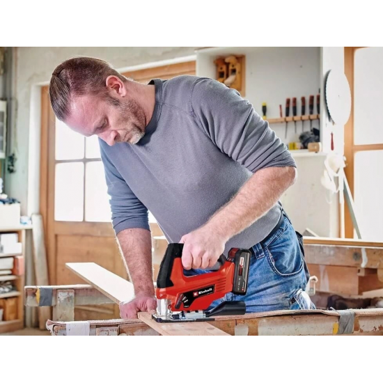 TC-JS 18/70 Li (1x 2,5 Ah) akülü dekupaj testere, farklı malzemelerde mükemmel kesim yapmanız gerektiğinde her zaman yanınızdadır. Power X-Change ailesinin bir üyesi olarak ev, atölye ve garajdaki işler için çok yönlülük sunar. Akülü dekupaj testeresi, akıcı çalışması ve 2.700 dev/dak rölanti devri sayesinde ahşapta 70 mm derinliğe ve çelikte 8 mm derinliğe kadar hassas kesimlerin yanı sıra 45°'ye kadar eğimli kesimlere olanak sağlar. Birlikte teslim edilen parçalanma koruması sayesinde yırtıksız ve temiz kesimler mümkündür. Değiştirilebilir sarkaç stroku her zaman hızlı kesim süreci sağlar. T şaftlı testere bıçağı tutucusu hızlı ve aletsiz bıçak değişimine olanak sağlar. Toz üfleme fonksiyonu ve ıslak veya kuru elektrikli süpürgelere bağlantı için emiş adaptörü, çalışırken en iyi görüşü sağlar. Çelik taban plakası üzerinde bulunan plastik kayar parça özellikle hassas iş parçalarını korur ve aynı zamanda çiziklere veya kirlenmeye karşı koruma sağlar. Tutma kolunda bulunan yumuşak kavrama alanları her ortamda rahat bir çalışma sağlar. 2,5 Ah Power X-Change akü ve şarj cihazı dahil. Teslimat kapsamında ayrıca 1x ahşap dekupaj testeresi bıçağı, bir emiş adaptörü ve bir altıgen anahtar bulunur.