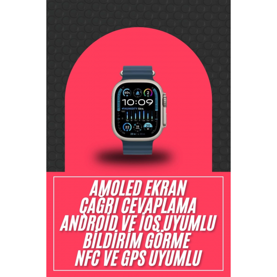 Mey İthalat® 49mm Akıllı Saat Amoled Ekranlı Kadın Erkek Kol Saati Plastik Kordon