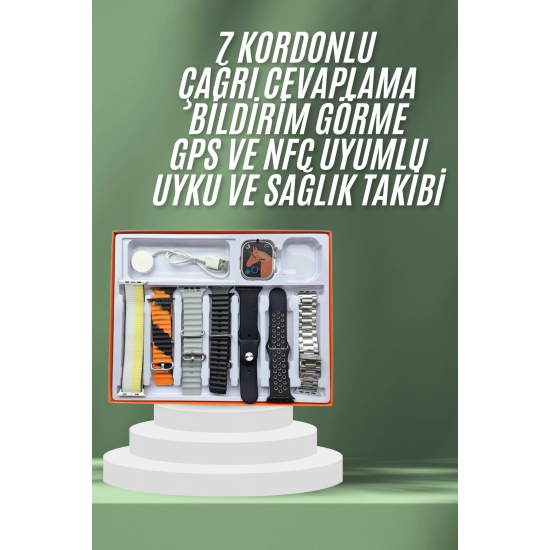 Mey İthalat® 7 Kordonlu Akıllı Saat Plastik Kordon Hasır Kordon Çelik Kordon