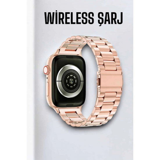 Tam Donanımlı Akıllı Saat - Aktivite ve İletişim Kolaylığı Yüksek Batarya Kapasitesi: 2000-3000 mAh bataryası ile uzun süreli kullanım sağlar, seyahatlerde bile şarj endişesini ortadan kaldırır. Rose Gold Estetiği: Zarif ve şık tasarımıyla stil sahibi kullanıcıların tercihi. Aktivite ve Fitness Takibi: Adımsayar, kalori ölçümü ve egzersiz takibiyle sağlıklı yaşam hedeflerinize ulaşın. Uyku Analizi: Uyku düzeninizi izler, uyku kalitenizi artırmak için veriler sunar. Nabız Ölçer ve Sağlık İzleme: Kalp atış hızınızı anlık izleyerek sağlık hedeflerinize ulaşmanıza yardımcı olur. Entegre GPS Desteği: Rotanızı hassas bir şekilde izler ve yön bulma ihtiyaçlarınızda yardımcı olur. Bluetooth ile Kolay İletişim: Sesli görüşme özelliğiyle telefonunuza dokunmadan aramalarınıza cevap verebilirsiniz. Titreşimli Bildirimler: Gelen aramalar, mesajlar ve uygulama uyarılarını titreşimle kolayca fark edin.Gelişmiş özellikleri ve şık tasarımıyla hem işlevsellik hem de estetik arayan kullanıcılar için mükemmel bir tercih.