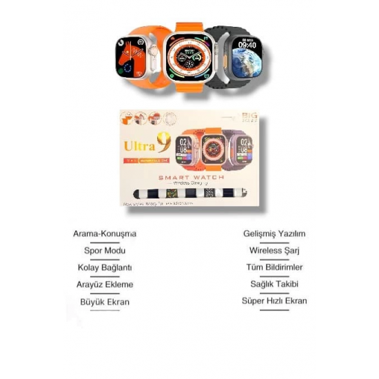 Yüksek Kaliteli Görüntü Deneyimi: 2.09 inç HD IPS ekran, geniş ve parlak bir ekran deneyimi sunar. Tam uyumlu dokunmatik ekranıyla tüm işlevlere kolayca erişebilirsiniz. Çağrı ve Bildirim Yönetimi: Android ve iOS cihazlarla kusursuz uyum sağlayan bu saat, çağrılarınızı yönetebilir, bildirimlerinizi görüntüleyebilir ve telefonsuz iletişim imkanı tanır. Bluetooth arama özelliği sayesinde telefonunuzu cebinizden çıkarmadan konuşabilirsiniz. Sağlık ve Egzersiz Takibi: Kalp atış hızı, kan basıncı, kalori tüketimi, uyku izleme ve çoklu spor modları ile günlük aktivitelerinizi kontrol altında tutar. Sağlığınızı ve formunuzu korumak artık daha kolay! Her Koşula Uyumlu Tasarım: Toz ve suya dayanıklı yapısı sayesinde dış mekanlarda da sorunsuz kullanım sunar. Yedi farklı kordon seçeneği ile hem sportif hem de klasik görünümler için uygundur. Güçlü Performans: 49 mm genişliği ve yüksek kapasiteli polimer bataryası sayesinde uzun süre kesintisiz kullanım sağlar. Uzaktan müzik kontrolü, parlaklık ayarı, hava durumu ve telefon bulma gibi özelliklerle hayatınıza ekstra konfor katar.