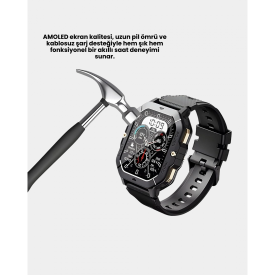 Akıllı özellikleri ve sade tasarımı bir araya getiren bu saat, günlük yaşamda pratiklik sunar. Bildirim takibi, spor modları, müzik kontrolü ve zamanlayıcı gibi fonksiyonlar sayesinde hayatınızı daha düzenli hale getirir.Uzun pil ömrü ve kablosuz şarj desteği, kullanım konforunu artırır. Ultra ince ve hafif yapısı, gün boyu bilekte rahat bir deneyim sağlar. AMOLED ekranı ile hem estetik hem de işlevsel bir kullanım sunar.Teknoloji ve şıklığı bir arada isteyen kullanıcılar için güçlü bir alternatiftir.