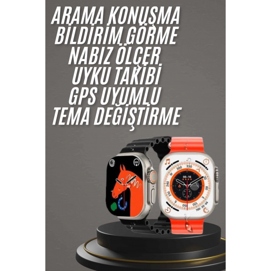 Mey İthalat® Yeni Model Akıllı Saat Ultra Smart Watch Gümüş Kasa 45mm Titreşim