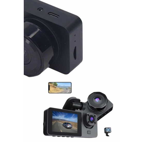 Bu çok yönlü 3 kameralı araç içi kayıt cihazı, sürüş sırasında kapsamlı güvenlik ve net görüntüleme deneyimi sunmak üzere tasarlanmıştır. 1080P Full HD ön kamerası, trafikte yaşanan tüm anları yüksek çözünürlükle kaydederken; 720P arka kamera ve VGA iç kamera ile aracın her yönünü aynı anda görüntüleme imkanı sağlar. Özellikle geniş açılı lensler sayesinde kör nokta riski en aza indirilmiş olur.Cihazın entegre G-Sensörü, ani çarpışma, sarsıntı ya da hareket anlarını otomatik olarak algılayarak ilgili görüntüleri özel olarak kaydeder ve bu önemli kayıtların üzerine yazılmasını engeller. Ayrıca park modu sayesinde, araç çalışmıyor olsa bile hareket algılandığında otomatik olarak kayıt başlatılır, böylece aracınızı her zaman güvende tutabilirsiniz.Gece görüş desteği, düşük ışıklı ortamlarda bile net ve kaliteli video kayıtları yapılmasını sağlarken, gelişmiş H.264 video sıkıştırma teknolojisi sayesinde dosyalar daha az yer kaplar, daha uzun süreli kayıtlar mümkün hale gelir. 2 inç IPS ekranı ile canlı görüntü takibi yapabilir, daha önce kaydedilen görüntülere kolayca erişebilirsiniz.170° geniş açılı ön kamerası ve 120° iç kamera açısıyla trafikte ya da park halinde hiçbir detayı kaçırmazsınız. 256 GB'a kadar Micro SD kart desteği sunan sistem, uzun kayıt süreleri için ideal bir depolama kapasitesi sağlar. Dahili 350 mAh bataryası, kısa süreli enerji kesintilerinde bile cihazın çalışmaya devam etmesini sağlar.Ergonomik tasarımı sayesinde aracın görüş açısını engellemez ve montajı oldukça kolaydır. Ön, arka ve iç mekanları aynı anda gözetleyerek hem sürücüler hem de araç sahipleri için tam kapsamlı bir güvenlik çözümü sunar. Hem şehir içi kullanımda hem de uzun yolculuklarda güvenliğinizi üst seviyeye taşır.