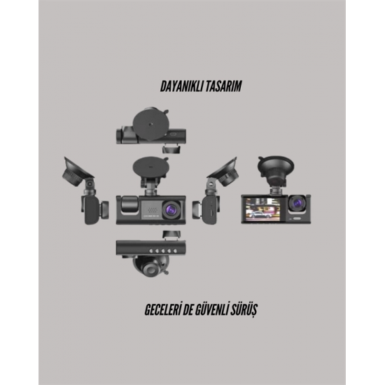 TA-01, sürüş esnasında aracınızın her yönünü gözlemlemenizi sağlayan çok yönlü bir araç içi kamera sistemidir. Ön, iç ve arka kameralarıyla 360 dereceye yakın bir görüntüleme kapasitesine sahiptir.Ön kamera 1080P Full HD, iç ve arka kameralar ise 720P çözünürlük sunar. Bu sayede plakalar, trafik işaretleri ve çevresel detaylar net şekilde kaydedilir.170° geniş açı ile sürüş sırasında kör nokta riskini minimize eder. Geniş görüş açısı sayesinde sadece önünüzü değil, aracın yanlarını da görebilir, kritik anları kaçırmadan kaydedebilirsiniz.Gece görüş özelliği, düşük ışıklı ortamlarda bile yüksek görüntü kalitesi sağlar. Bu özellik, gece sürüşlerini daha güvenli hale getirir.Cihaz üzerindeki 2.0 inç LCD ekran, kayıtları anında izlemenize ve ayarları kolaylıkla yapmanıza olanak tanır.Hareket algılama fonksiyonu, park halindeyken bile güvenlik sağlar. Araç etrafında bir hareket algılandığında otomatik olarak kayıt başlatılır.G-sensör sayesinde ani frenleme veya çarpışma durumlarında görüntü kaydı otomatik olarak kilitlenir ve üzerine yazılmaz.32 GB’a kadar Micro SD kart desteğiyle uzun süreli kayıt imkanı sunar (kart dahil değildir).Suya ve toza dayanıklı dış yapısıyla her mevsim ve yol koşuluna uyum sağlar.