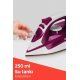 Şıklığı ve işlevselliği bir arada sunan bu mor seramik tabanlı buharlı ütü, evde ütü yapmayı keyifli ve zahmetsiz bir hale getiriyor. 2200W gücündeki motoru, kısa sürede ısınarak güçlü buhar üretimini mümkün kılar; 177 gr/dk’ya ulaşan şok buhar performansı sayesinde kalın kumaşlarda bile derinlemesine ütüleme sağlar. Bu etkileyici buhar gücü, en zorlu kırışıklıkları bile hızlıca açarken, ütüleme sürenizi ciddi şekilde kısaltır.Seramik taban teknolojisi, kumaş üzerinde kayganlık sağlayarak konforlu ve hızlı bir kullanım deneyimi sunar. Aynı zamanda yüzeyin çizilmelere karşı dayanıklı olması, uzun süreli performans vadeder. Ürünün dikey ütüleme özelliği, özellikle askıdaki giysileri ya da perdeleri yerinden indirmeye gerek kalmadan kolayca düzeltmenize imkân tanır. Damlama önleme sistemi sayesinde düşük sıcaklıklarda bile ütüleme sırasında su damlaması önlenir, böylece giysilerde istenmeyen su lekelerinin oluşması engellenir.Ütünün içerisinde yer alan kireçlenmeyi önleyen sistem ve kendi kendini temizleme fonksiyonu, uzun ömürlü kullanım ve yüksek performansın devamlılığı için büyük avantaj sunar. Bu özellikler, cihazın bakım ihtiyacını en aza indirirken, aynı zamanda performans kaybını da önler. 360 derece dönebilen kablosu ise ütüleme sırasında hareket özgürlüğü sağlayarak ergonomik bir kullanım deneyimi sunar.Gerek teknik özellikleriyle gerekse estetik görünümüyle öne çıkan bu buharlı ütü, günlük yaşamda ütü işini kolaylaştırmakla kalmaz, aynı zamanda giysilerinizin her zaman düzenli ve şık görünmesini sağlar. Hem pratiklik hem de yüksek performans arayan kullanıcılar için ideal bir tercih olacaktır.