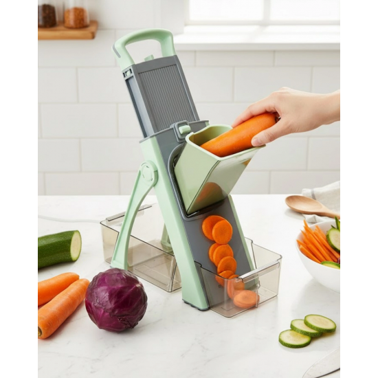 Yüksek kaliteli çelikten üretilmiş el rendesi, sağlam yapısı sayesinde uzun ömürlü kullanım sunar. Paslanmaz doğrama bıçakları, sebze ve meyveleri kısa sürede ve eşit şekilde dilimlemenize olanak tanır. Günlük mutfak işlerinde pratiklik arayan kullanıcılar için ideal bir yardımcıdır.Üst aparatı sayesinde birkaç basit hareketle ürünleri istediğiniz kıvama getirebilirsiniz. Güvenliği ön planda tutan tasarımı, ellerinizin bıçaklara yaklaşmasını engeller. Bu özellik, özellikle yoğun mutfak kullanımında büyük avantaj sağlar.Katlanabilir gövde yapısı, yer tasarrufu sağlar. Fırça ve hazne desteği sayesinde hem temizlik hem de düzen kolaylaşır. Kolay temizlenebilir yüzeyi, hijyenik kullanım sunar.