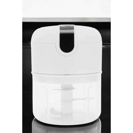 Mey İthalat® Şarjlı Portatif Doğrayıcı Mini Pratik Rondo El Doğrayıcı Üç Bıçaklı Çelik Bıçaklı