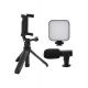 Bu kompakt video çekim seti, akıllı telefonlarla içerik üretenler için pratik, kullanışlı ve taşınabilir bir çözüm sunar. Günlük vlog çekimlerinden canlı yayınlara, sosyal medya içeriklerinden röportajlara kadar pek çok alanda rahatlıkla kullanılabilir.Set içerisinde yer alan mini tripod, hafif ve sağlam yapısıyla hem iç hem dış mekânda sabit çekim yapmanızı kolaylaştırır. Ayarlanabilir yapısı sayesinde farklı açılarda konumlandırılabilir ve titreşimsiz, sabit videolar çekmenizi sağlar. Küçük boyutuyla çantanızda yer kaplamadan taşınabilir, seyahatlerde kolaylıkla yanınızda götürülebilir.Entegre LED ışık, karanlık veya loş ortamlarda bile kaliteli görüntüler yakalamanıza yardımcı olur. Ayarlanabilir ışık seviyesi sayesinde ortamın ihtiyacına göre ışık yoğunluğu belirlenebilir, böylece hem doğal hem de profesyonel bir aydınlatma elde edilebilir.Kutu içeriğine dâhil edilen mikrofon, ses kalitesini artırarak arka plan gürültüsünü minimuma indirir. Böylece sesli anlatım gerektiren videolarınızda, röportajlarda ya da canlı yayınlarda net ve anlaşılır bir ses elde edebilirsiniz. Uzaktan kumanda desteği sayesinde çekim sırasında telefonunuza dokunmadan kayıt başlatabilir ya da durdurabilirsiniz. Bu özellik, özellikle yalnız çalışan içerik üreticileri için büyük kolaylık sağlar.Kolay kurulum özelliği ve geniş cihaz uyumluluğu ile bu kit, her seviyedeki kullanıcı için ideal bir yardımcıdır. İçeriklerinizi daha profesyonel bir seviyeye taşımak istiyorsanız, bu pratik set tüm ihtiyaçlarınıza cevap verecek niteliktedir.