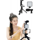 Video çekimlerinizi daha profesyonel hale getirmek isteyenler için tasarlanmış bu video making kit, kompakt ve işlevsel yapısıyla mükemmel bir çözüm sunar. Kumandalı mikrofon, LED ışık ve mini tripod içerir, bu da videolarınızın net, sabit ve kaliteli olmasını sağlar. Özellikle mobil cihazlarla yapılan çekimlerde stabilite sağlamak için mükemmeldir.Mini tripod, hafifliği ve taşınabilirliği ile seyahatlerde, açık hava etkinliklerinde veya günlük kullanımda oldukça kullanışlıdır. Küçük boyutuna rağmen sağlam duruşu, telefonunuzu güvenli bir şekilde sabitler, böylece titreşimli görüntülerden kaçınırsınız. Çekim açısını kolayca ayarlayarak yaratıcılığınızı konuşturabilirsiniz.Dahili LED ışık, düşük ışıklı ortamlarda bile mükemmel aydınlatma sağlar, böylece her koşulda yüksek kaliteli video ve fotoğraf çekebilirsiniz. Işığın yoğunluğu ayarlanabilir, bu sayede çekimlerinizde istediğiniz atmosferi yaratabilirsiniz. Ayrıca, kumandalı mikrofon ile ses kaydınız da net ve kaliteli olur, arka plan gürültüsünden arındırılmış sesler elde edebilirsiniz.Kumanda özelliği sayesinde, tripoddan uzakta olsanız bile video çekimlerinizi kolayca kontrol edebilirsiniz. Bu, özellikle yalnız başınıza çekim yaparken büyük bir avantaj sağlar.Video içerik üreticileri, vlog çekimleri yapanlar, sosyal medya paylaşımları için içerik oluşturanlar ya da amatör video meraklıları için ideal olan bu kit, pratik kullanım, taşınabilirlik ve yüksek kaliteyi bir araya getiriyor.