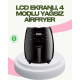 Mutfakta zamandan tasarruf etmek isteyenler için geliştirilen bu 2400W Airfryer, yüksek performanslı motoru ve geniş 6 litrelik kapasitesiyle büyük ölçekte kullanım kolaylığı sağlar. Çıtır ve sağlıklı yemekler hazırlamak için ideal olan bu cihaz, yağ kullanımını minimum seviyeye indirerek geleneksel kızartma yöntemlerine göre çok daha az kalorili sonuçlar sunar. Dokunmatik LCD paneli, cihazın modern tasarımını tamamlayarak tüm ayarların kolayca yapılmasını sağlar.Sıcak hava sirkülasyon sistemi, yiyeceklerin her tarafını eşit şekilde pişirir. Bu teknoloji sayesinde tavuk, balık, sebze, patates, hamur işleri ve daha birçok yiyecek kısa sürede ideal kıvama ulaşır. 80–210 derece sıcaklık aralığı ve 5–60 dakika zamanlayıcı özelliği, her tarif için en uygun pişirme koşullarını ayarlamanıza olanak tanır.Sesli uyarı sistemi, pişirme süresi tamamlandığında sizi bilgilendirir. Otomatik kapanma özelliği ise hem güvenliği artırır hem de gereksiz enerji tüketimini önler. Yapışmaz kaplamalı hazne, yiyeceklerin yapışmasını engellerken kullanım sonrası temizlik sürecini büyük ölçüde kolaylaştırır. Haznenin bulaşık makinesinde yıkanabilir olması ise hijyen konusunda büyük rahatlık sağlar.Cihaz üzerinde bulunan 4 farklı hazır pişirme modu, en popüler tarifler için ideal ayarları tek tuşla sunar. Patates kızartması, tavuk baget, sebze karışımları ve hamur işleri hızlıca hazırlanabilir. Geniş kapasitesi, aile yemekleri ve kalabalık sofralar için mükemmel çözümdür.Kolay kullanım, sağlıklı pişirme ve güçlü performansı bir araya getiren bu Airfryer, her evin mutfağında yer alması gereken çok amaçlı bir cihazdır. Daha az yağ, daha fazla lezzet isteyen herkes için mükemmel bir tercihtir.