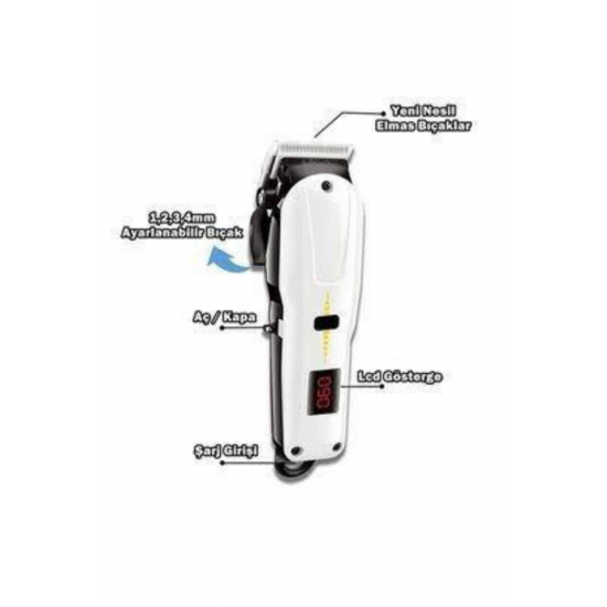 Mey İthalat® Profesyonel Şarjlı Tıraş Makinesi Turbo Kablosuz Saç Kesme Makinesi