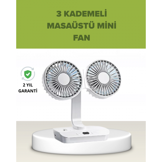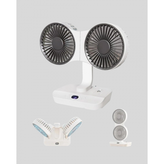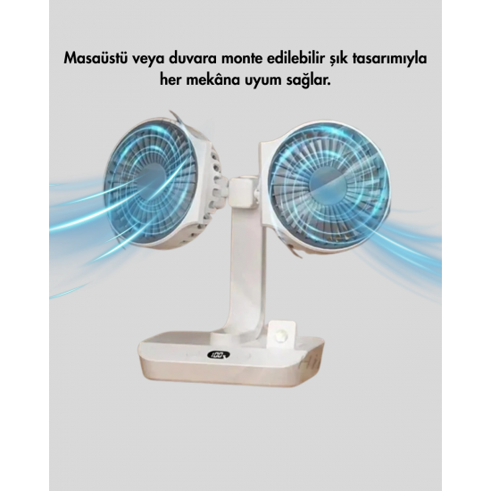 Mey İthalat® Çift Kafalı Masaüstü ve Duvar Tipi Sessiz USB Şarjlı Fan