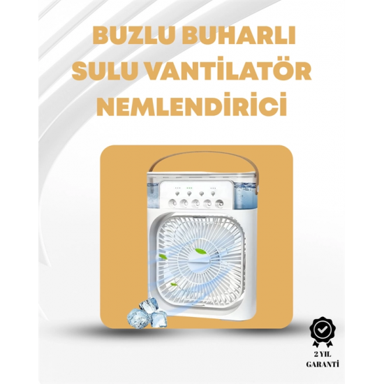 Mey İthalat® Taşınabilir 3'ü 1 Arada Mini Fan | Nemlendirici + Soğutucu + Gece Lambası