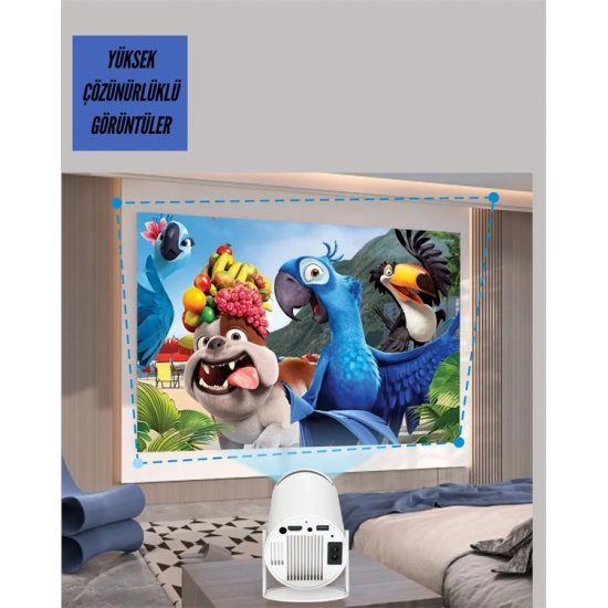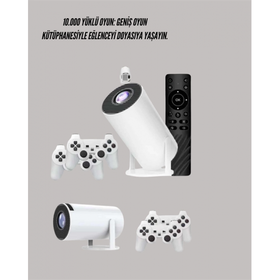 Gelişmiş teknolojiyle donatılmış bu kablosuz akıllı projeksiyon cihazı, hem günlük kullanım hem de profesyonel sunum ve eğlence ihtiyaçları için ideal bir çözümdür. 4K ultra HD çözünürlüğü, güçlü bağlantı seçenekleri, zengin uygulama desteği ve taşınabilir yapısıyla sinema keyfini, oyun deneyimini ve sunum verimliliğini bir araya getirir.Ürün Özellikleri & Açıklamaları1. 4K Ultra HD Çözünürlük Desteği 3840x2160 çözünürlük desteği ile sinema kalitesinde net ve keskin görüntüler sunar. Film, dizi, oyun veya sunumlarda renkler daha canlı, detaylar daha derindir. Büyük ekranlarda görüntü kaybı olmadan kaliteli görsel deneyim sağlar.2. Kablosuz Bağlantı Özellikleri (Wi-Fi 6 & Bluetooth 5.0) Wi-Fi 6 teknolojisi, hızlı ve kesintisiz internet bağlantısı sağlar. Yüksek çözünürlüklü içerikler takılmadan oynatılır. Bluetooth 5.0 desteği sayesinde kulaklık, hoparlör, oyun kumandası gibi cihazlarla kablosuz bağlantı kurabilirsiniz. Kablo karmaşasını ortadan kaldırır, hareket özgürlüğü sunar.3. Çoklu Bağlantı Seçenekleri HDMI Girişi: Bilgisayar, oyun konsolu, medya oynatıcı gibi cihazlarla uyumludur. USB Girişi (2 adet): Harici disk, USB bellek, mouse veya klavye bağlantısı yapılabilir. AUX Girişi: Harici ses sistemlerine bağlanabilir. RJ45 Ethernet Portu: İsteğe bağlı olarak kablolu ağ bağlantısı sağlar. Type-C PD Girişi: Cihaz kullanılırken şarj edilebilir.4. 10.000+ Oyun ve 4.000+ Uygulama Desteği Android tabanlı işletim sistemi sayesinde cihaz üzerinden Google Play gibi mağazalardan doğrudan uygulama ve oyun indirilebilir. Netflix, YouTube, Amazon Prime, Zoom, Spotify, Office uygulamaları gibi popüler uygulamalar desteklenir. Ayrıca 10.000'den fazla mobil oyun desteği ile eğlenceli bir oyun deneyimi sunar.5. Ekran Yansıtma (Screen Mirroring / Miracast / AirPlay) Akıllı telefon, tablet ya da bilgisayar ekranınızı cihazın ekranına anında yansıtabilirsiniz. Video, fotoğraf, sunum, dosya gibi içerikler büyük ekranda rahatlıkla paylaşılır. Android ve iOS cihazlarla tam uyumludur.6. Ayarlanabilir Çift Kollu Tasarım Cihazın çift kollu destek sistemi sayesinde farklı açılarda kolayca konumlandırılabilir. Tavan, masa veya tripod üzerinde sabit kullanım için uygundur. Kolay kurulum ve sağlam yapı, her ortamda güvenli kullanım sunar.7. Kompakt ve Taşınabilir Tasarım Cihaz sadece 1.2 kg ağırlığında olup kolayca taşınabilir. Kompakt ölçüleri sayesinde çantanızda, valizinizde ya da araçta yer kaplamadan taşınabilir. Ev, ofis, kamp, okul gibi birçok ortamda pratik kullanım sağlar.Teknik Özellikler (Detaylı) ÖzellikAçıklamaÇözünürlük Desteği4K Ultra HD (3840x2160)Kablosuz BağlantıWi-Fi 6, Bluetooth 5.0HDMI Girişi1 adetUSB Girişi2 adet USB 3.0AUX Girişi1 adet 3.5mm jackEthernet GirişiRJ45 LAN PortuType-C Şarj DesteğiVar (PD destekli)Ekran YansıtmaMiracast, AirPlay, DLNAİşletim SistemiAndroid tabanlıUygulama Desteği4.000+ uygulamaOyun Desteği10.000+ mobil oyunProjeksiyon Mesafesi1.5 – 5 metre arasıGörüntü Boyutu30 – 200 inç arasıHoparlörDahili stereoSoğutma SistemiSessiz fan teknolojisiAğırlıkYaklaşık 1.2 kgBoyutlar22 x 16 x 9 cm