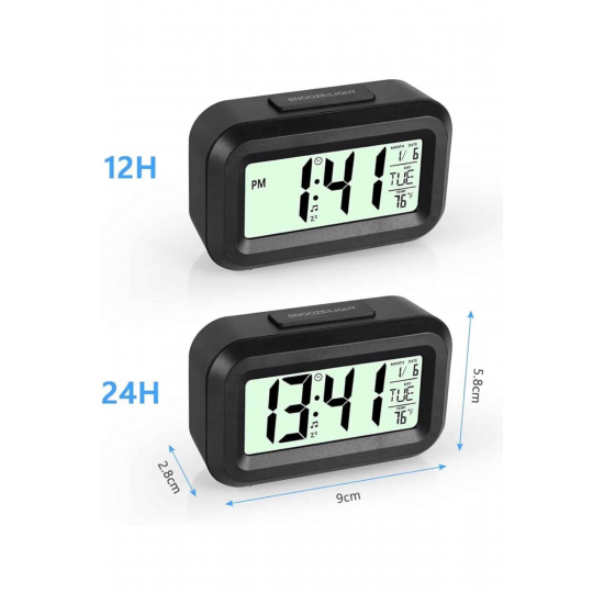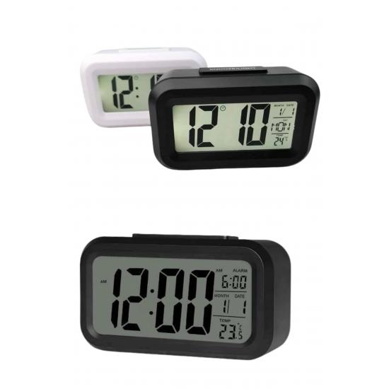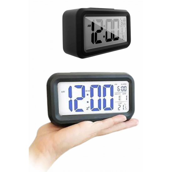 Mey İthalat® Dijital Masa Saati Termometreli Takvim Çalar Saat Led Ekran Pilli