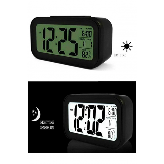 Mey İthalat® Işıklı Dereceli Masa Ofis Saati Alarmlı Termometre Takvim Çalar Saat