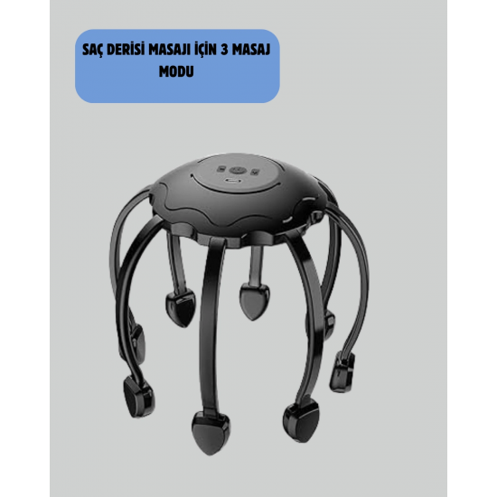 Mey İthalat® USB Şarjlı Kafa Masaj Aleti 3 Modlu 8 Başlıklı Stres Giderici