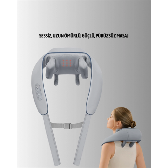 VNB-01, günün yorgunluğunu geride bırakmak isteyen kullanıcılar için özel olarak geliştirilmiş, çok yönlü bir boyun masaj cihazıdır. Sadece boyun bölgesiyle sınırlı kalmadan omuz, sırt, bel ve bacak bölgelerinde de etkili sonuçlar sunar. Gelişmiş teknolojisiyle manuel masajın etkilerini taklit ederek kas düğümlerini çözmekte ve gergin kasları rahatlatmakta son derece başarılıdır.Yoğurma başlıkları, parmak ucu baskısını simüle ederek gerçek bir insan eli hissi verir. Biyonik masaj teknolojisi, kaslara hem yüzeysel hem de derin dokulu basınç uygulayarak etkin bir gevşeme sağlar.Cihazda yer alan iki farklı masaj modu, kullanıcıların günlük ihtiyaçlarına ve fiziksel durumlarına göre seçim yapmasına olanak tanır. Daha hafif mod rahatlatıcı bir deneyim sunarken, yoğun mod derin kas gerginliğini hedef alır. Üç kademeli hız ayarı ile bu modlar özelleştirilebilir.Masaj deneyimini destekleyen bir diğer önemli özellik ise ısı terapisi fonksiyonudur. Cihaz, kasların gevşemesini hızlandıran ısıyı kontrollü şekilde yayarak kan dolaşımını artırır, böylece daha etkili ve kalıcı bir rahatlama sunar.Fırçasız, sessiz motor teknolojisi, hem uzun ömürlü bir kullanım sağlar hem de cihazın sessiz çalışmasına imkan tanır. Özellikle sessiz ortamlarda rahatsızlık vermeden kullanılabilir.1800 mAh bataryası, cihazın şarjlı ve kablosuz olarak kullanılmasına olanak tanır. İster evde, ister iş yerinde, ister araçta kullanıma uygundur. Kutu içeriğinde araç adaptörü de yer almaktadır, böylece yolculuklarda bile kullanım kolaylığı sunar.Ergonomik olarak tasarlanmış U şekli, boyun bölgesini tamamen sarar ve cihazın doğru konumda sabit kalmasına yardımcı olur. Ayarlanabilir askıları, farklı vücut tiplerine uyum sağlar ve kullanım sırasında ellerinizi serbest bırakmanıza olanak tanır.Cihazın kontrolü, yan paneldeki tuşlar sayesinde oldukça basittir. Güç düğmesiyle cihazı açıp kapatabilir, modları değiştirebilir ve hız ayarlarını kolayca yapabilirsiniz.Ürün Teknik Özellikleri: Renk: Gri Batarya: 1800mAh Giriş Voltajı: 5V Güç Tüketimi: 10W Ağırlık: 1290 gram Malzeme: A Kalite ABS Isıtma Özelliği: Var Masaj Modları: 2 farklı mod Hız Seviyesi: 3 kademeli ayar Motor Tipi: Sessiz fırçasız motor Kullanım Alanı: Boyun, omuz, sırt, bel, bacak