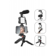 Bu video çekim kiti, hem amatör hem de profesyonel içerik üreticilerinin ihtiyaçlarına pratik çözümler sunan çok yönlü bir yardımcıdır. Kompakt ve taşınabilir yapısıyla, günlük vlog çekimleri, röportajlar, eğitim videoları ve canlı yayınlar gibi birçok alanda kullanıma uygundur.Ürün, mini tripod, LED ışık ve harici mikrofon gibi temel bileşenleri bir araya getirerek stabil görüntü, net ses ve doğru ışıklandırma sağlar. Tripod, farklı açılara kolaylıkla ayarlanabilir ve sağlam gövdesi sayesinde telefonunuzu güvenle sabit tutar. Küçük boyutu sayesinde çantanızda yer kaplamadan taşınabilir ve ihtiyaç duyduğunuz her an çekime hazır hâle gelir.Dahili LED ışık, düşük ışıklı ortamlarda bile etkili bir aydınlatma sunarak çekimlerin kalitesini artırır. Özellikle akşam çekimlerinde ya da kapalı alanlarda profesyonel bir görünüm elde etmek isteyenler için büyük avantaj sağlar. Işık seviyesi ayarlanabilir olduğu için farklı koşullara göre özelleştirme yapılabilir.Sete dahil edilen harici mikrofon, standart telefon mikrofonlarına kıyasla çok daha net ve temiz bir ses kaydı sunar. Ortam gürültüsünü azaltarak konuşmaların anlaşılır olmasını sağlar ve bu sayede içerikleriniz izleyiciye daha profesyonel yansır.Kutu içeriğinde yer alan Bluetooth uzaktan kumanda ise kullanıcıya çekim esnasında özgürlük tanır. Telefonunuza dokunmadan kayıt başlatabilir veya durdurabilirsiniz. Özellikle tek başına çekim yapanlar için büyük kolaylık sağlar.Tüm bu özellikleriyle bu kit, içerik üretim sürecinizi daha profesyonel, kaliteli ve zahmetsiz bir hâle getirir. Hem evde hem dış mekânda kullanıma uygun bu set, mobil stüdyo deneyimi yaşamak isteyen herkes için ideal bir tercihtir.