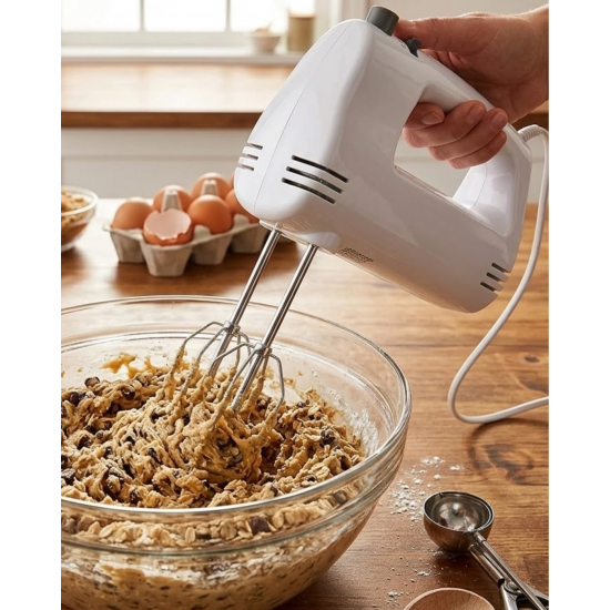 Elektrikli el mikseri, mutfakta hamur ve tatlı hazırlıklarını daha pratik hale getiren kullanışlı bir mutfak cihazıdır. Güçlü motor sistemi sayesinde malzemeleri hızlı ve etkili şekilde karıştırabilir.250W motor gücü sayesinde farklı karıştırma işlemleri rahat şekilde yapılabilir. Kek hamuru, krema, sos ve yumurta çırpma gibi işlemler için oldukça ideal bir kullanım sunar.5 kademe hız ayarı sayesinde tariflere uygun hız seviyesini seçebilirsiniz. Bu özellik farklı yoğunluktaki karışımlar için daha kontrollü bir kullanım sağlar.Paslanmaz çelik çırpma aparatları dayanıklı yapısı sayesinde uzun süre kullanılabilir. Çift çırpıcı sistemi malzemelerin eşit şekilde karışmasını sağlar.Aksesuar çıkarma düğmesi sayesinde çırpıcı aparatları kolay şekilde çıkarılabilir ve temizlenebilir.Kompakt tasarımı sayesinde mutfakta fazla yer kaplamaz ve kolayca saklanabilir.
