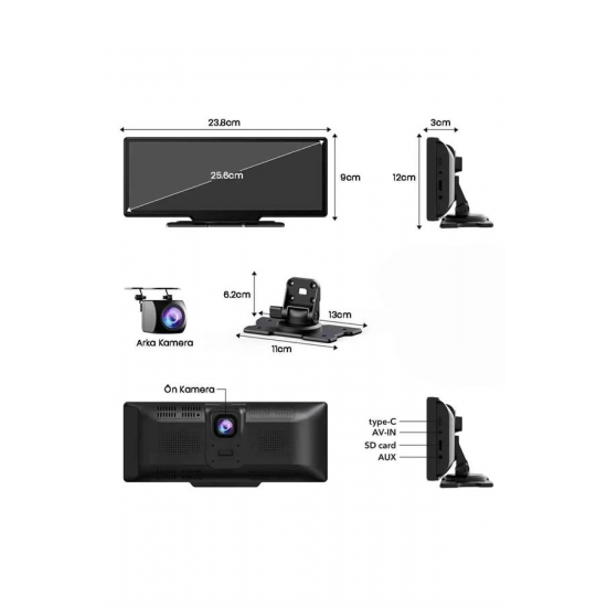 10.26 inçlik geniş ve yüksek çözünürlüklü 4K hassas dokunmatik ekranıyla sürüş keyfini yeni bir boyuta taşıyan bu kablosuz CarPlay ekran, hem konforu hem de güvenliği bir araya getiriyor. iOS ve Android cihazlarla uyumlu olan bu sistem, karmaşık kablo tesisatına ya da araç orijinalliğini bozacak işlemlere gerek kalmadan doğrudan entegre edilebilir. Sadece 12V çakmaklık soketine takılarak saniyeler içinde kullanıma hazır hale gelir; ekstra profesyonel destek gerekmeden herkesin rahatlıkla kurabileceği bir yapıya sahiptir.Cihazla birlikte gelen ön ve arka kameralar sayesinde yalnızca bir multimedya ekranı değil, aynı zamanda kapsamlı bir güvenlik çözümü de sunar. Araç içi ve dışı görüntüleri kaydeden bu sistem, olası kaza durumlarında güvenliğinizi belgelemek için büyük avantaj sağlar. Döngüsel kayıt teknolojisi sayesinde hafıza kartı dolduğunda en eski kayıtlar otomatik olarak silinir ve yeni görüntüler için yer açılır — bu da kullanıcıya zaman kazandıran pratik bir detaydır.Kablosuz CarPlay ve Android Auto desteği sayesinde haritalar, müzik uygulamaları, telefon aramaları gibi işlevlere kolayca erişebilir; aynı zamanda ekran yansıtma özelliği ile telefonunuzdaki videoları doğrudan ekranda izleyebilirsiniz. Cihaz, FM verici veya Aux çıkışı ile araç hoparlör sisteminize kolayca bağlanabilir, böylece ses kalitesinden ödün vermeden içeriklerinizin keyfini çıkarabilirsiniz.Modern araç kullanıcılarının beklentilerine yanıt veren bu CarPlay ekran, hem teknolojik hem de kullanıcı dostu yapısıyla öne çıkar. Sürüş sırasında dikkat dağıtmadan daha bilinçli kararlar almanızı sağlar, seyahatlerinizi eğlenceli ve güvenli hale getirir.