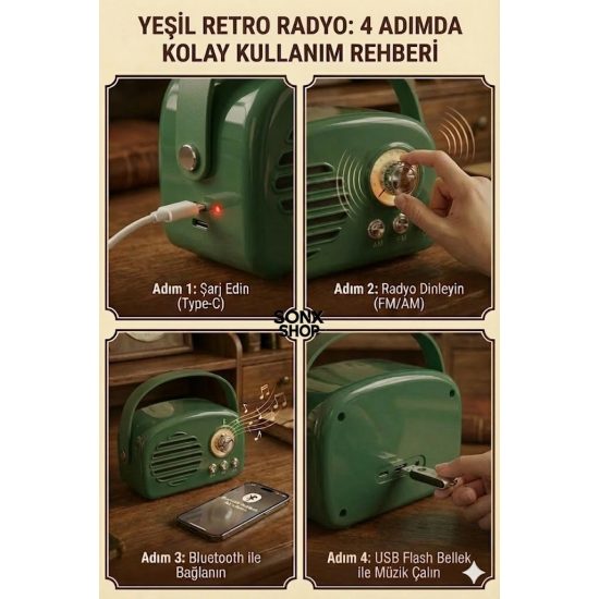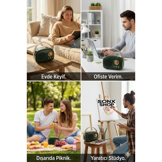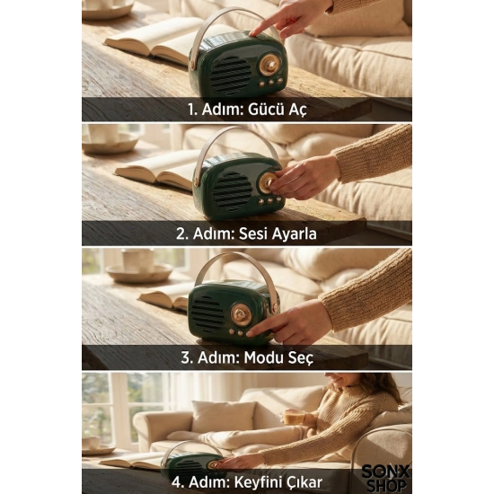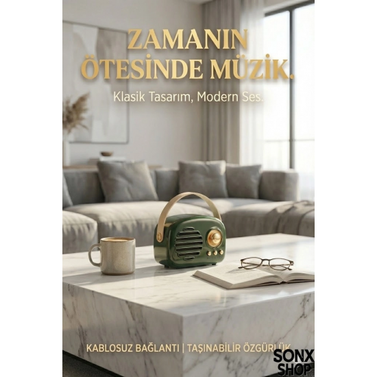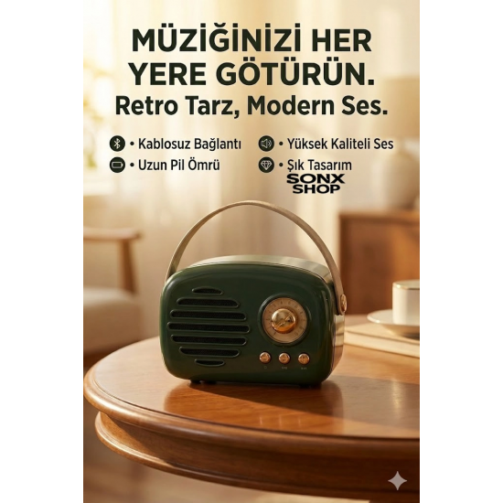 Nostaljik Retro Bluetooth hoparlör, hem estetik hem de fonksiyonel özellikleriyle günlük müzik deneyiminizi zenginleştirir. Taşınabilir yapısı sayesinde istediğiniz her yerde kullanabilir, kaliteli ses performansının tadını çıkarabilirsiniz.