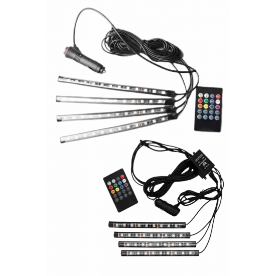 Mey İthalat® 12'Lİ Şerit Led Işık RGB Sese ve Müziğe Duyarlı Araç İçi Ayak Altı
