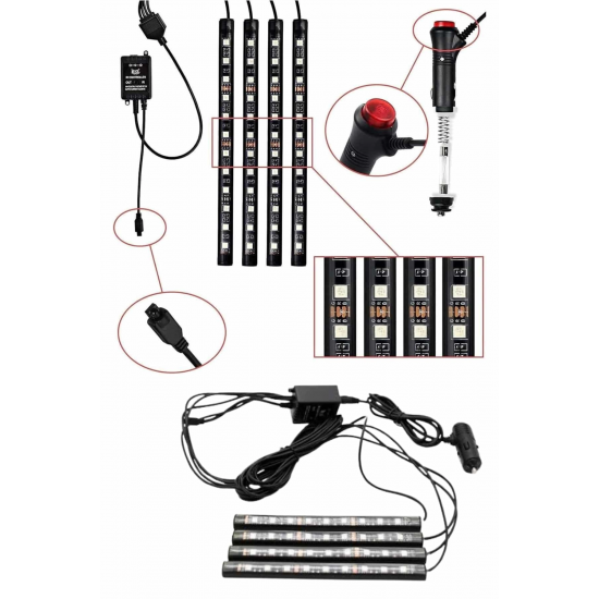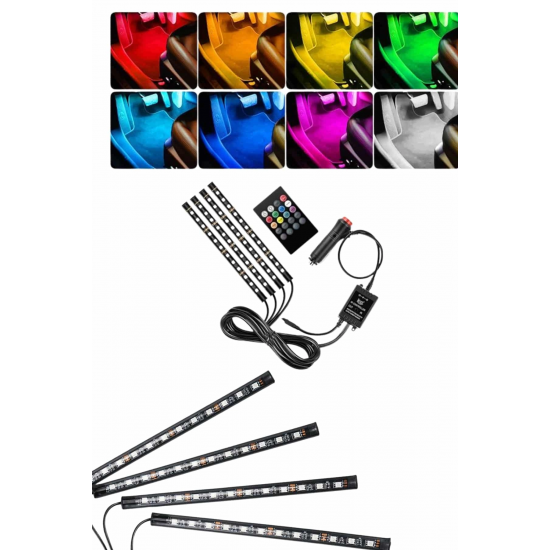 Mey İthalat® RGB Işıklı Araç İçi Aydınlatma Kumandalı 12'li Led Işık Renk Değiştirebilen