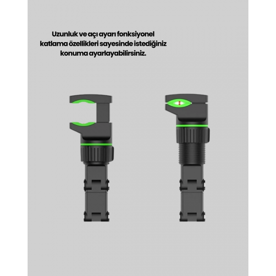Ayarlanabilir kıskaçlı dikiz aynası telefon tutucu, araç içerisinde telefon kullanımını daha güvenli ve konforlu hale getirir. Ürün, dikiz aynası ile cam arasında minimum 3–4 cm boşluk olan araçlarda kullanılabilir.Güçlü kıskaç sistemi, aynaya sağlam şekilde tutunur ve sürüş esnasında sarsıntıyı minimuma indirir. Uzun ömürlü malzemeden üretilmiştir ve yoğun kullanıma uygundur.Katlanabilir kol yapısı ve ayarlanabilir açı fonksiyonu, telefonu istenilen konuma getirmeyi kolaylaştırır. Navigasyon, müzik ve görüşmeler için ideal bir kullanım sunar.Koltuk başlıklarına da takılabilen tasarımı, arka koltukta çocuklar için eğlenceli bir kullanım alanı oluşturur.Şık ve sade tasarımı sayesinde aracın iç görünümünü bozmaz. Tüm telefon modelleriyle uyumlu olması, ürünü evrensel bir araç aksesuarı haline getirir.