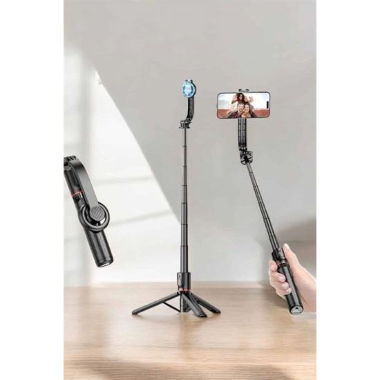 Hafif ve taşınabilir tasarımıyla her yere kolayca yanınızda taşıyabileceğiniz bu selfie çubuğu, seyahatlerde, günlük yaşamda veya özel etkinliklerde kusursuz bir deneyim sunar. Bluetooth ile kolay bağlantı ve hızlı kontrol düğmeleri sayesinde fotoğraf çekmek, video kaydetmek veya grup çekimleri yapmak çok daha kolay hale gelir. Ergonomik sap yapısı, uzun süreli kullanımda bile ellerinizin yorulmasını önlerken şık ve modern tasarımı her tarza uyum sağlar. 360 derece dönebilen başlık, farklı açılardan yaratıcı çekimlere olanak tanırken, ayaklı tripod özelliği uzun süreli sabit çekimler için idealdir. Kısacası, bu ürün sadece bir selfie çubuğu değil, aynı zamanda fotoğrafçılık tutkunları için çok yönlü bir araçtır.