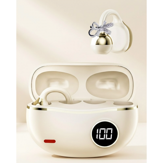 Kablosuz Bluetooth kulaklık, güvenli kulak klipsi tasarımı sayesinde gün boyu konforlu ve sabit bir kullanım sunar. Eller serbest iletişim imkânı sağlayan bu şık kulaklık, özellikle yoğun tempoda çalışan profesyoneller için ideal bir çözümdür. Kulak klipsi yapısı sayesinde kulakta kayma yapmadan sabit durur ve uzun süreli kullanımlarda rahatsızlık hissi oluşturmaz.Kompakt ve hafif tasarımı, bu Bluetooth kulaklığı günlük yaşamın vazgeçilmez bir parçası haline getirir. Çantanızda, cebinizde veya iş sırasında rahatlıkla taşıyabilir, aramalarınızı dilediğiniz her yerde yanınızda götürebilirsiniz. Günlük kullanımın yanı sıra seyahat, ofis, araç kullanımı ve yürüyüş gibi birçok senaryoda pratik bir kullanım sunar.Uzun pil ömrü sayesinde gün boyunca bağlantıda kalmanızı sağlar. Sürekli hareket halinde olan kullanıcılar için kesintisiz iletişim sunarak şarj endişesini minimuma indirir. Kristal netliğinde ses performansı ile aramalar sırasında karşı tarafı net bir şekilde duymanıza yardımcı olur ve sesinizi karşı tarafa berrak biçimde iletir.Zarif ve modern görünümüyle bu Bluetooth kulaklık, modayı ve işlevselliği bir araya getirir. Şık tasarımı sayesinde yalnızca teknolojik bir ürün değil, aynı zamanda stilinizi tamamlayan bir aksesuar olarak da öne çıkar.Set içeriğinde 1 adet Bluetooth kulaklık, 1 adet veri kablosu, 1 adet kullanım kılavuzu bulunur. Ayrıca 2 adet kurdele küpe hediyeli olarak gönderilir. Hem kendiniz hem de sevdikleriniz için şık ve kullanışlı bir hediye alternatifidir.