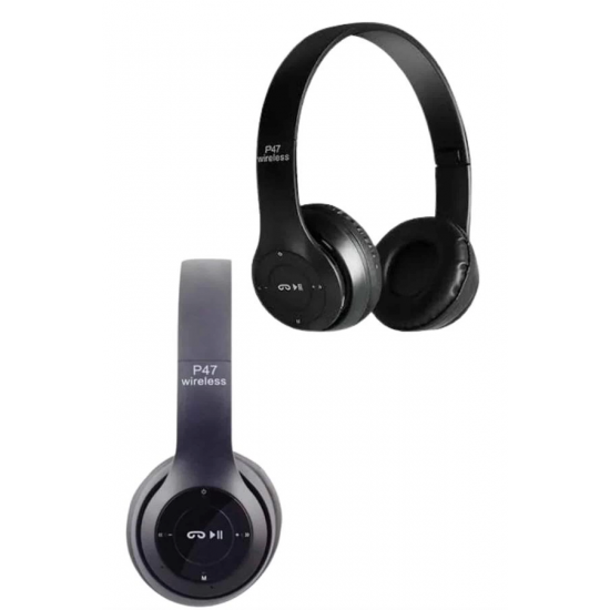 Mey İthalat® Bluetooth Kablosuz Kulaklık Siyah Wireless 5.0 Kulak Üstü Uzun Pil Ömrü