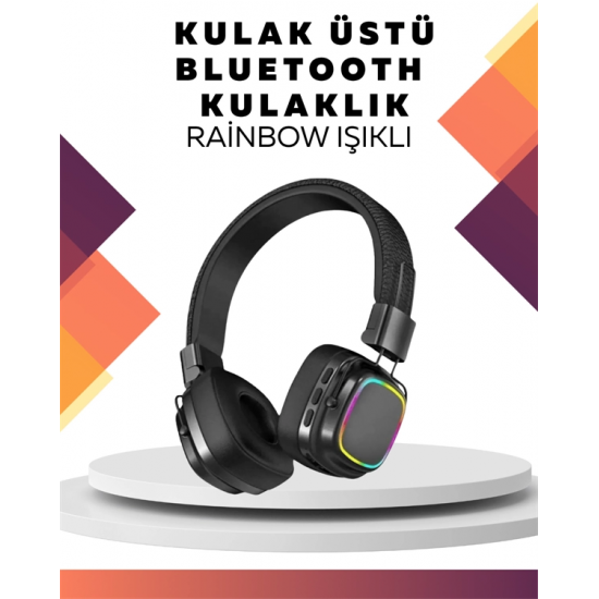 Mey İthalat® Kablosuz RGB Işıklı Katlanabilir Bluetooth Kulak Üstü Kulaklık