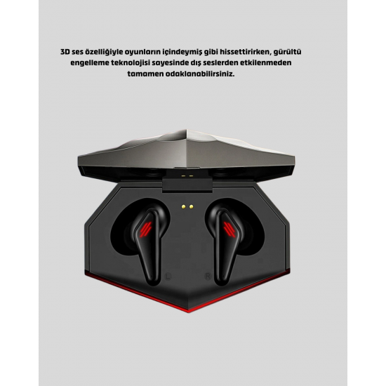 Her saniyenin önemli olduğu oyunlarda fark yaratın! Bu oyuncu kulaklığı, 45 ms ultra düşük gecikme teknolojisi sayesinde sesin ekrandaki aksiyonla mükemmel şekilde senkronize olmasını sağlar.3D ses deneyimi, oyundaki her hareketi, yönü ve mesafeyi algılamanıza yardımcı olur; sanki sanal dünyanın içindeymişsiniz gibi hissedersiniz.Gürültü engelleme sistemi, dış ortam seslerini filtreleyerek maksimum odaklanma sağlar. Güçlü Bluetooth 5.0 bağlantısı, 10 metreye kadar kesintisiz Android, iOS, bilgisayar gibi farklı cihazlarla tam uyumludur.Ergonomik silikon yapısı, uzun oyun seanslarında kulak konforunu korur. 90° açılı kulaklık tasarımı, kulak içine tam oturur ve düşme riskini ortadan kaldırır.Ayrıca LED ışıklı modern tasarımı, hem tarzınıza hem de oyun atmosferine enerji katar..Hem oyun hem müzik için optimize edilmiş bu kulaklık; yüksek performans, konfor ve stil arayan herkesin favorisi olacak.