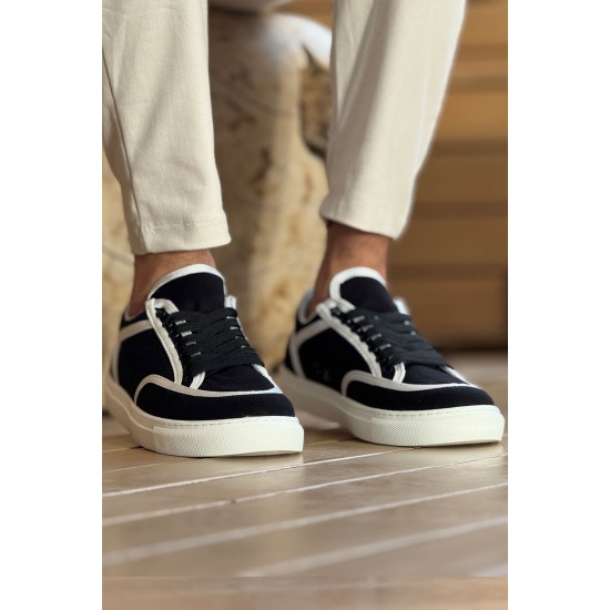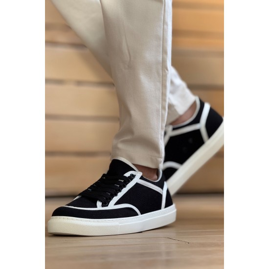 MN2505 - Keten Erkek Ayakkabı SİYAH - BEYAZ